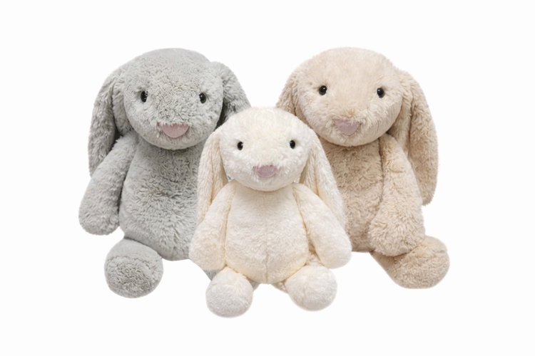 בובת ארנב מהממת בגובה 30 ס"מ, עם אוזניים ארוכות ועיניים מתוקות – עשויה בד קטיפתי סופר רך, בטוחה ומלטפת במיוחד.