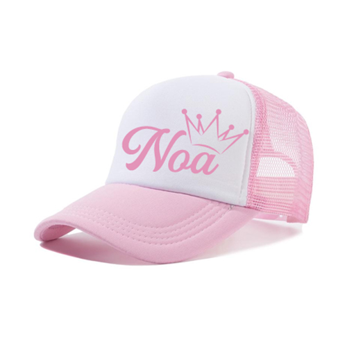 כובע רשת קיצי ממותג אישית מדגם כתר, מושלם לאירועים, מסיבת רווקות, קייטנות, ימי הולדת ופעילויות קיץ.