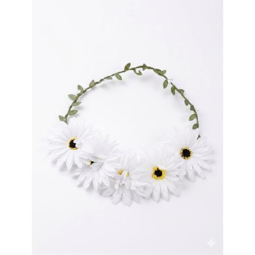 כתר שזור  מפרחי בד לבנים עם נגיעות עלים ירוקים, מעניק מראה טבעי ועדין. מושלם לחג השבועות, לצילומים, מסיבות. מתאים לילדות ולמבוגרות כאחד, עם סרט קשירה גמיש להתאמה נוחה.