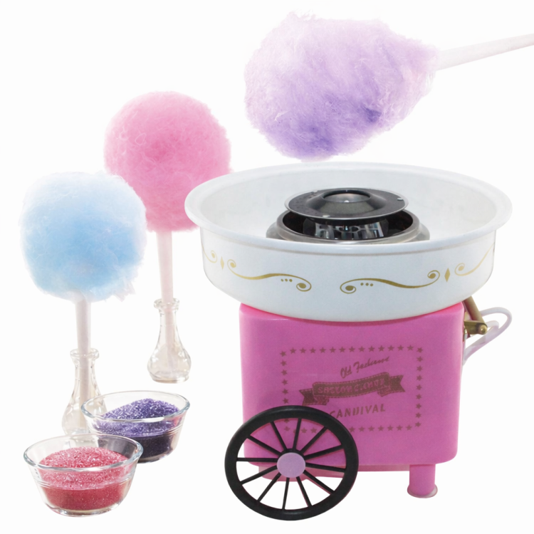 מכונת סוכר ביתית מעוצבת על גלגלים שמאפשרת להכין צמר גפן מתוק בקלות ובמהירות, ממש כמו בדוכנים . המכונה מתחממת תוך דקות ומפיקה צמר גפן רך וטעים מכל סוגי הסוכר – רגיל, צבעוני או בטעמים.