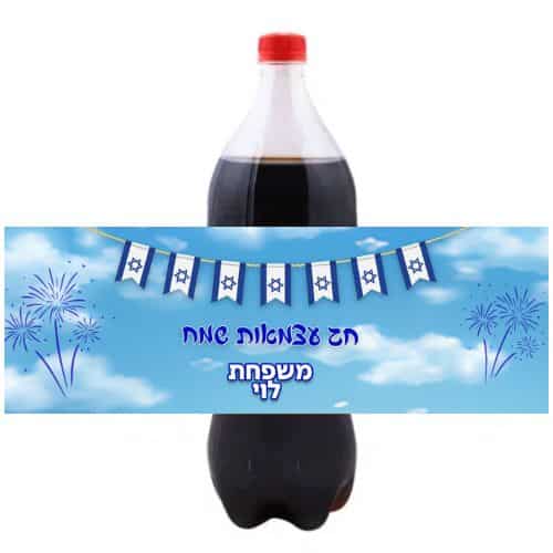 חבקים מעוצבים לבקבוקים גדולים בעיצוב חגיגי ליום העצמאות! פתרון מושלם לשדרוג שולחן האירוח והוספת טאץ' ממותג וצבעוני לכל בקבוק שתייה.