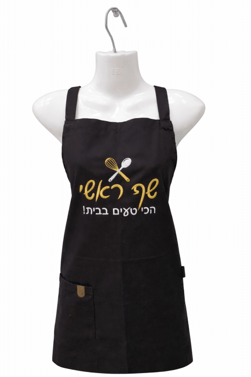סינר שף עם רקמה עד 5 מילים ואייקון.