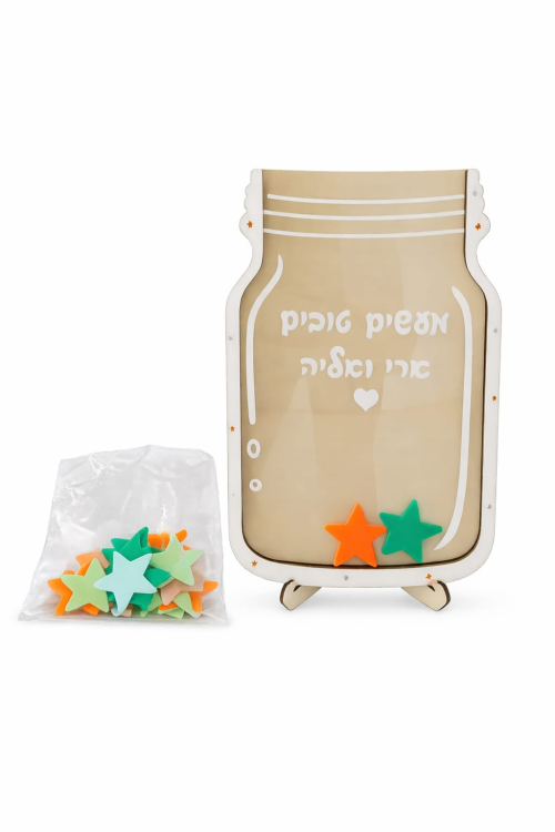 צנצנת תגמולים מעוצבת וייחודית, מושלמת לעידוד התנהגות חיובית, חיזוק מוטיבציה והצבת מטרות לילדים – בבית, בגן או בכיתה. הצנצנת מגיעה עם מעמד יציב להנחה על שולחן, מדף או שידה (לא מגנטית), וכוללת כוכבים צבעוניים להוספה כהוקרה על התנהגות טובה או עמידה במשימות.