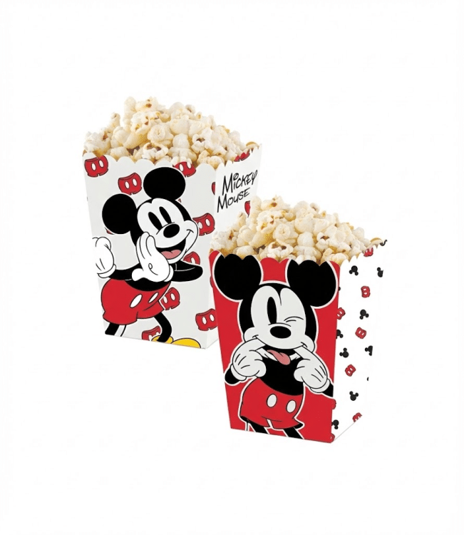 קופסאות פופקורן מעוצבות בדמותו האהובה של מיקי מאוס, מושלמות לימי הולדת, מסיבות ילדים, הקרנות סרטים ואירועי דיסני.