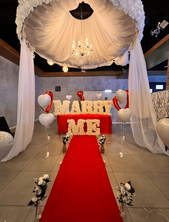 אותיות "MARRY ME" מפרחים – להצעת נישואין מרגשת במיוחד 💍🤍