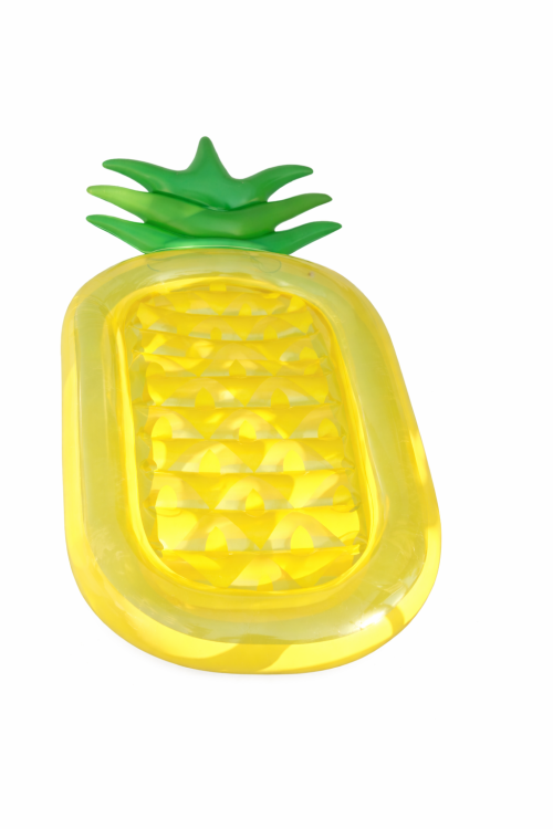 מזרן ים מתנפח בעיצוב אננס טרופי, צבע צהוב בוהק עם עלים ירוקים, מושלם לבריכה, לים, למסיבות קיץ ולימי כיף. עיצוב מרשים שמוסיף סטייל וצבע לכל בילוי במים.