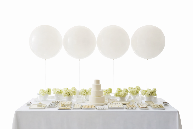 בלון גומי לבן, ניתן לנפח בתוך בלון שקוף או לחוד.