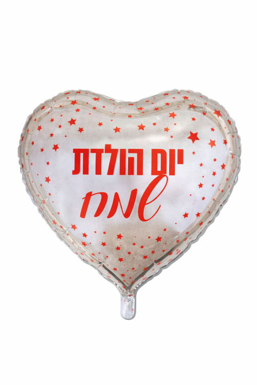 בלון אלומיניום חגיגי בצורת לב בצבע כסף וכיתוב אדום, עם הכיתוב “יום הולדת שמח” ועיטורי כוכבים אדומיפ. בלון קלאסי ושמח שמוסיף צבע ואווירת חג לכל מסיבת יום הולדת – לילדים, לנוער וגם למבוגרים.
