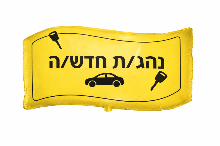 בלון מיילר גדול ובולט בעיצוב ייחודי עם הכיתוב “נהג/ת חדש/ה”, בצבע צהוב בהיר המדמה שלט אזהרה. הבלון כולל איור רכב ואייקוני מפתחות, ומושלם לחגיגת הוצאת רישיון נהיגה, הפתעה לנהג/ת חדש/ה, קישוט רכב או מסיבת ברכה.
