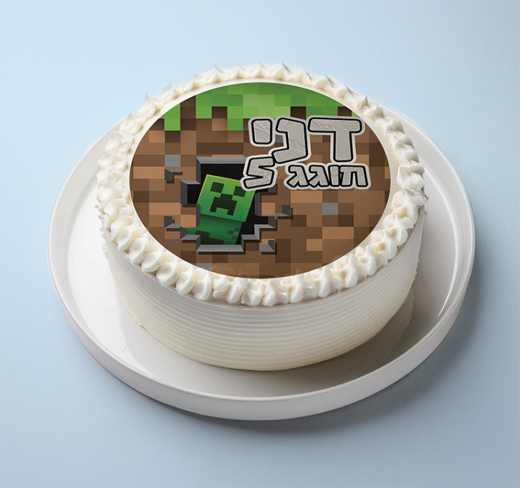 שדרגו את העוגה שלכם עם דף סוכר עגול בעיצוב מיינקראפט, כולל שם וגיל בהתאמה אישית.