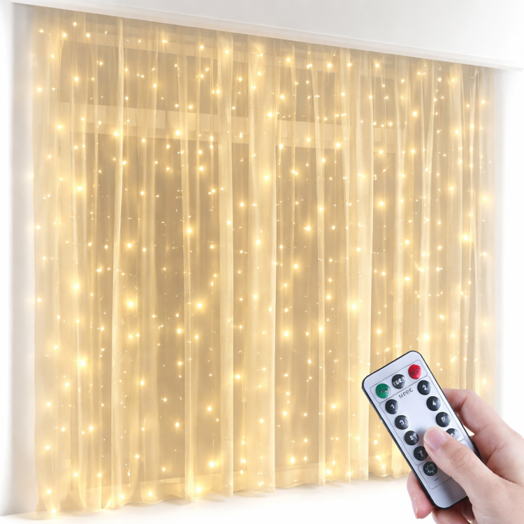 וילון לד איכותי מאוד בגודל 3 על 3 מתאים לעיצוב חופה עיצוב חצר ועוד . מתחבר עם כבל USB ומגיע עם שלט בלוטות'