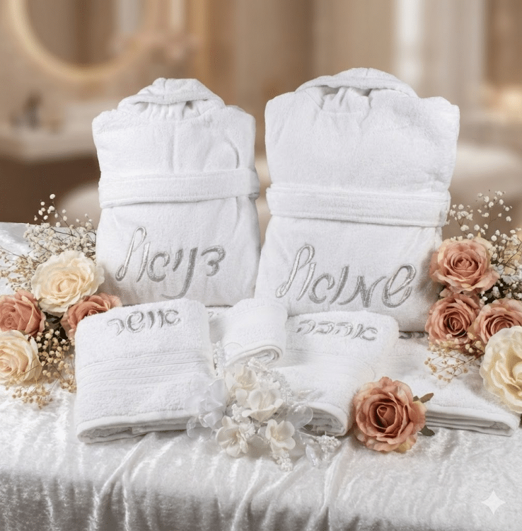 חלוק מגבת זוגי עם 4 מגבות פנים