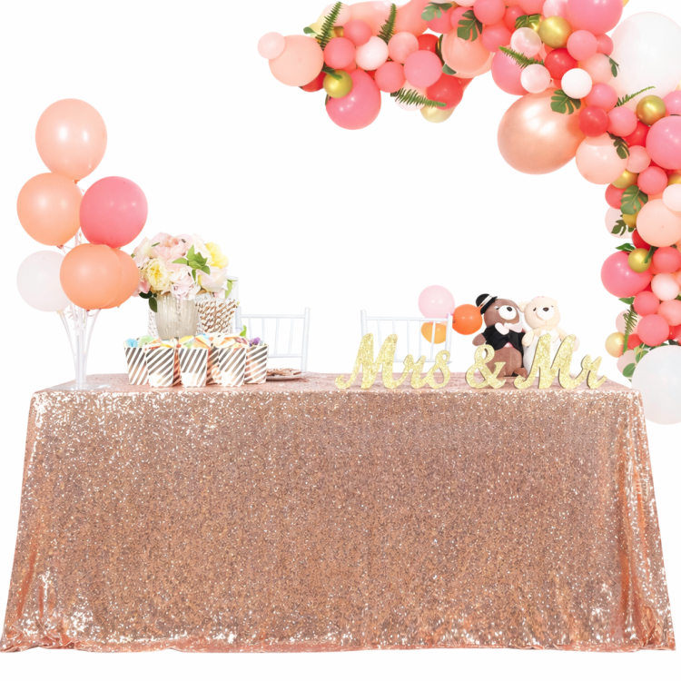 חצאית שולחן רוז גולד נצנצים בד