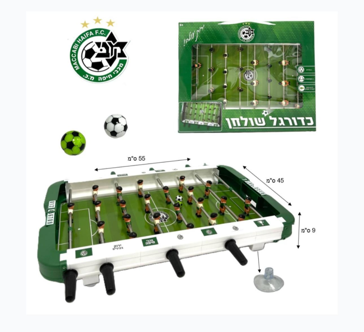 משחק כדורגל שולחני מעוצב עם סמל מכבי חיפה – חוויה מושלמת לכל אוהד!