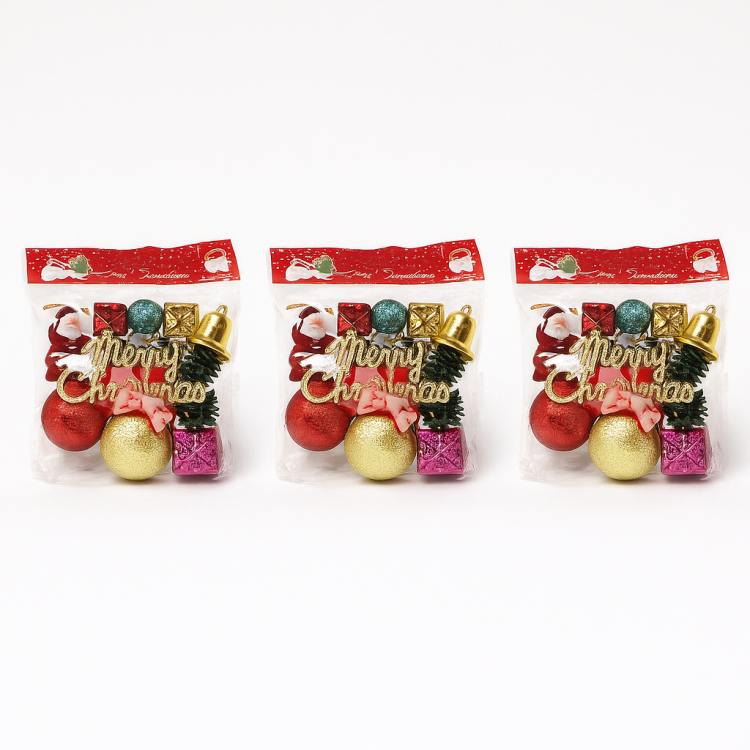 3 ערכות קישוטים צבעונית ומהודרת לחג המולד, הכוללת מגוון פריטים נוצצים להשלמת מראה חגיגי ומרשים.