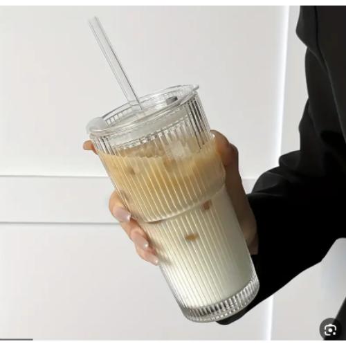 כוס אקריליק מעוצבת בקווים אנכיים יוקרתיים, מושלמת לשתייה קרה כמו אייס קפה, שייקים, מים, מיצים ועוד.
