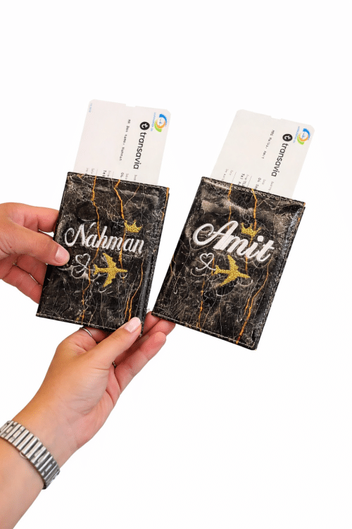 כיסוי דרכון זוגי עם רקמה (בחירת צבע)