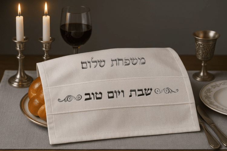 כיסוי חלה רקום עם שם משפחה – "שבת ויום טוב"