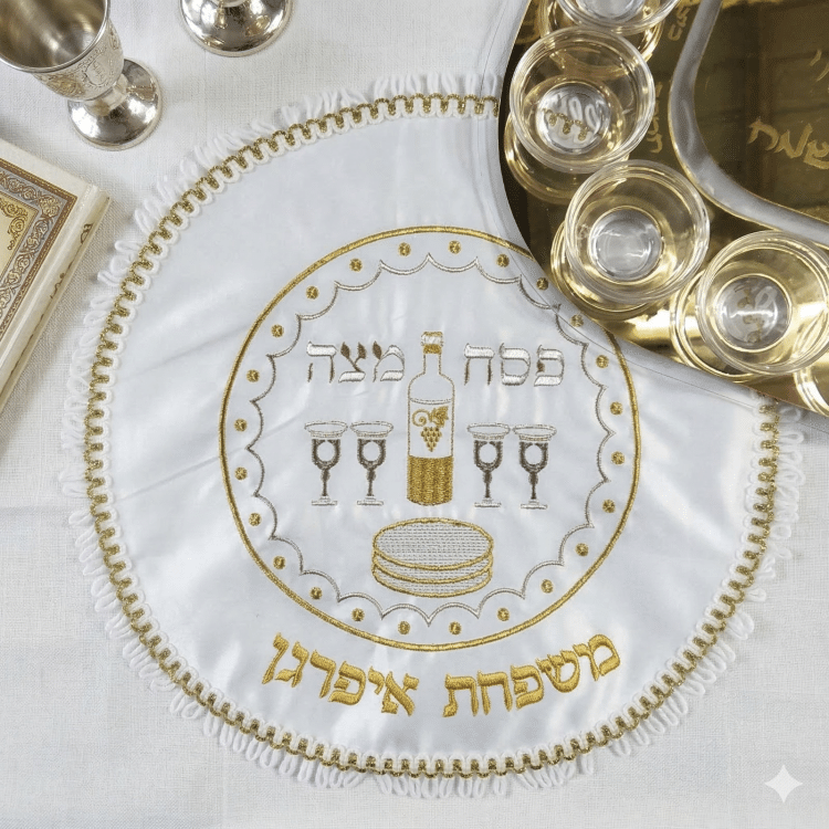 הכיסוי עשוי מבד איכותי עם גימור מוקפד ושוליים מעוטרים, המוסיפים טאץ' אלגנטי לשולחן החג. ניתן להזמין עם רקמת שם משפחה לבחירה, מה שהופך אותו לפריט אישי ומיוחד לשימוש בכל חג פסח וגם למתנה מרגשת למשפחה.