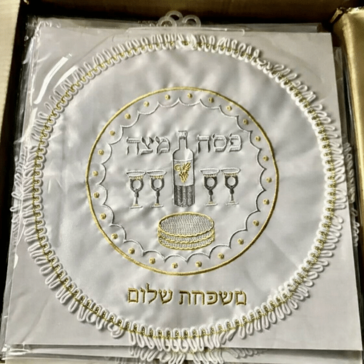 כיסוי מצה מהודר מבד סאטן איכותי, במראה יוקרתי ומבריק המעניק נוכחות חגיגית לשולחן הסדר.