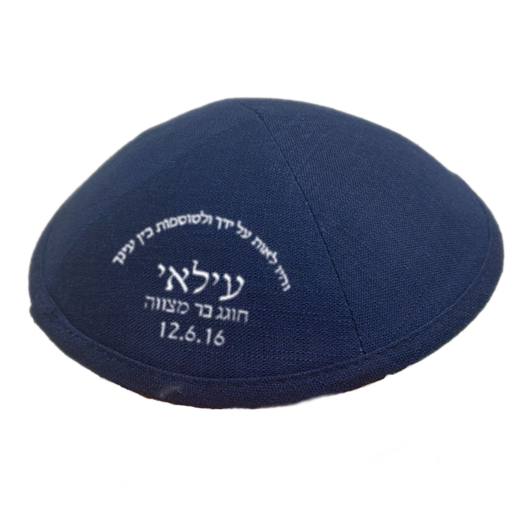 כיפה פשתן צבע כחול עם הדפסה