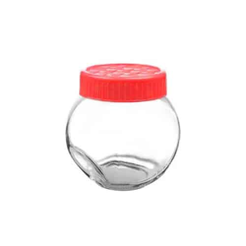 כלי שקוף קטן למילוי סוכריות בצבע אדום הוא פריט מושלם לעיצוב שולחנות, מתנות קטנות ואירועים חגיגיים.