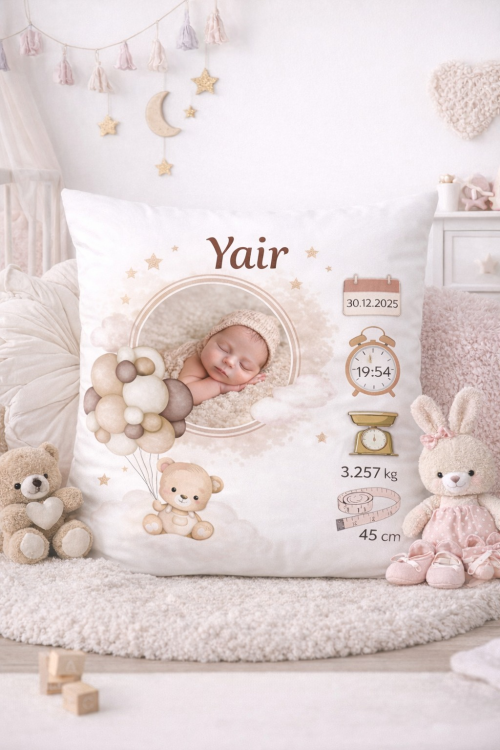 כרית בעיצוב תעודת לידה – מזכרת אישית ומרגשת