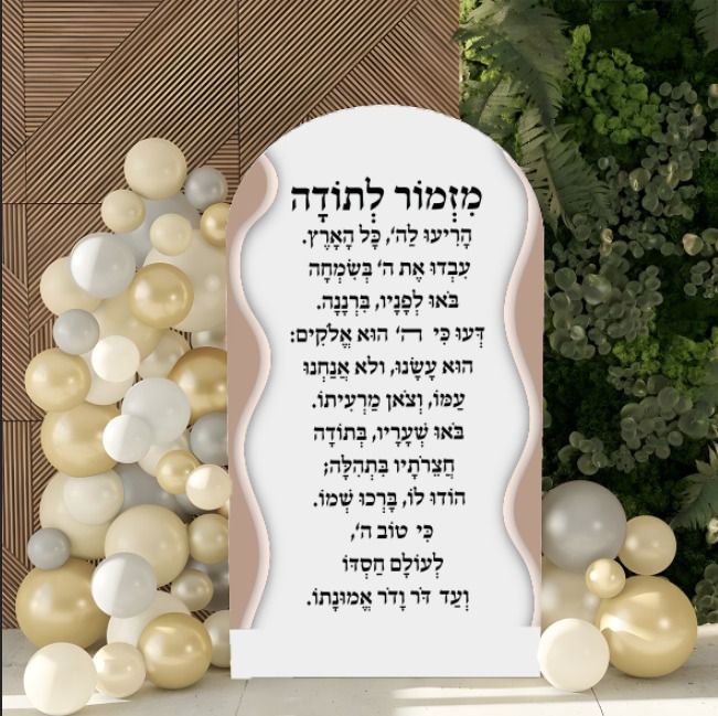 לוח קאפה מעוצב עם הדפסה של מזמור לתודה, אידאלי כרקע דקורטיבי לאירועים חגיגיים. ההדפסה מתבצעת בגודל 1.60 מ׳ על גבי לוח קאפה בגודל כולל 1.80 מ׳,