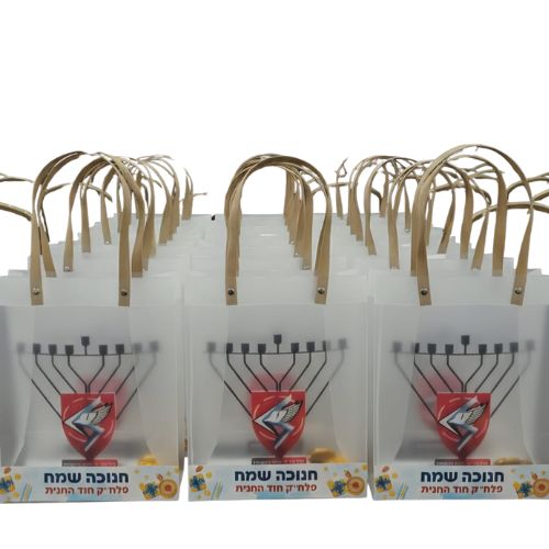 מארז יוקרתי ומרשים הכולל חנוכייה ממותגת אישית, ארוזה בתוך שקית פרימיום עם ידיות.