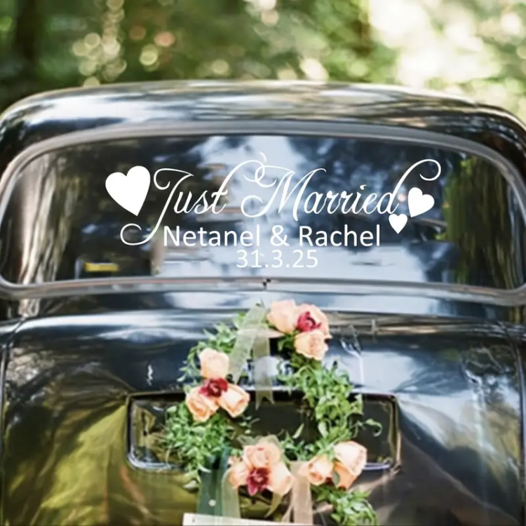 מדבקת ה-Just Married שלנו בעיצוב אישי היא הדרך המושלמת להודיע לעולם על השמחה שלכם בסטייל.