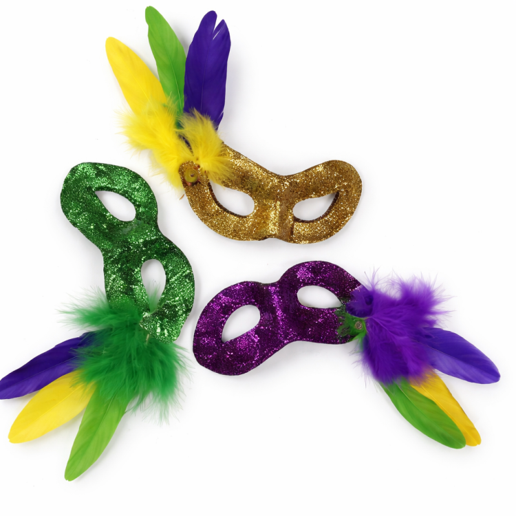 מסכת עיניים חגיגית ומנצנצת בעיצוב קרנבלי, מעוטרת בנוצות צבעוניות למראה שמח, ססגוני ומלא סטייל.