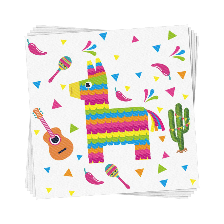 מפיות נייר צבעוניות בעיצוב פיאסטה מקסיקנית, עם הדפס של  מעניקות כל שולחן אווירה שמחה, קיצית ומלאת אנרגיה – מושלם לימי הולדת