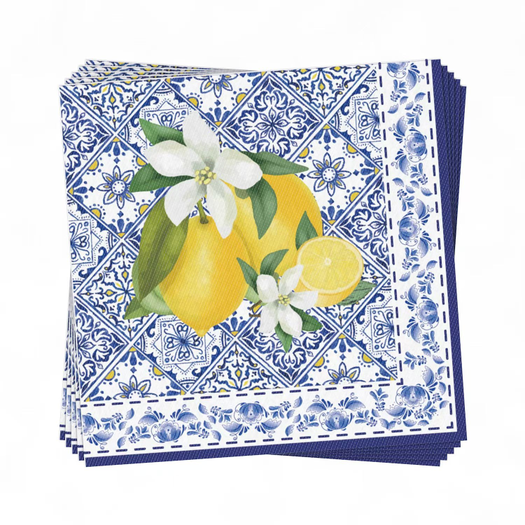 מפיות נייר מעוצבות בסגנוןיווני, עם הדפס לימונים.