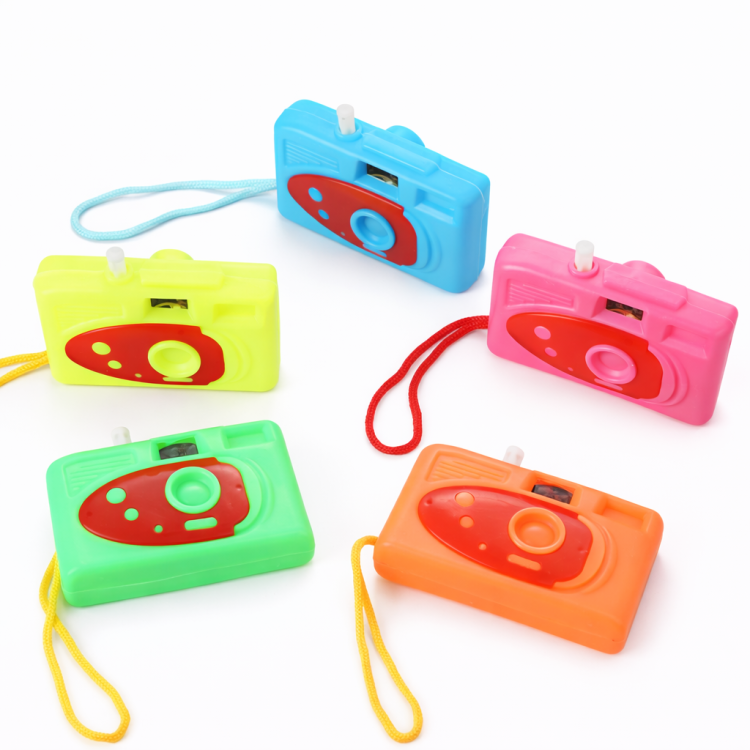 מצלמת פלסטיק צבעונית שמשמחת כל ילד – בלחיצה על הכפתור תחליפו בין תמונות מצוירות דרך העינית!