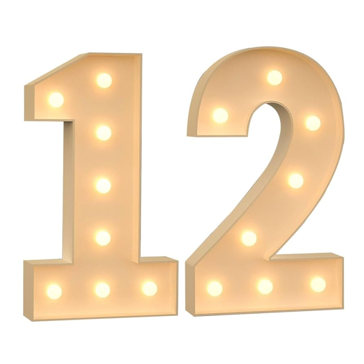 המספרים המוארים בגובה 30 ס"מ מוסיפים ברק וסטייל, ויוצרים מראה יוקרתי ומרשים כבר בכניסה לאירוע או לצד שולחן הקינוחים.