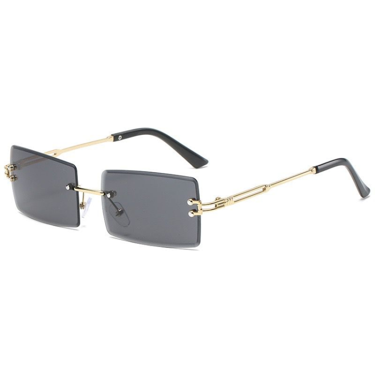 עיצוב רטרו מלבן עם עדשות כהות ללא מסגרת, משולב עם ידיות מוזהבות דקיקות ואלגנטיות. המשקפיים קלים במיוחד ללבישה וכוללים מתאמים שקופים לגשר האף לנוחות מרבית.