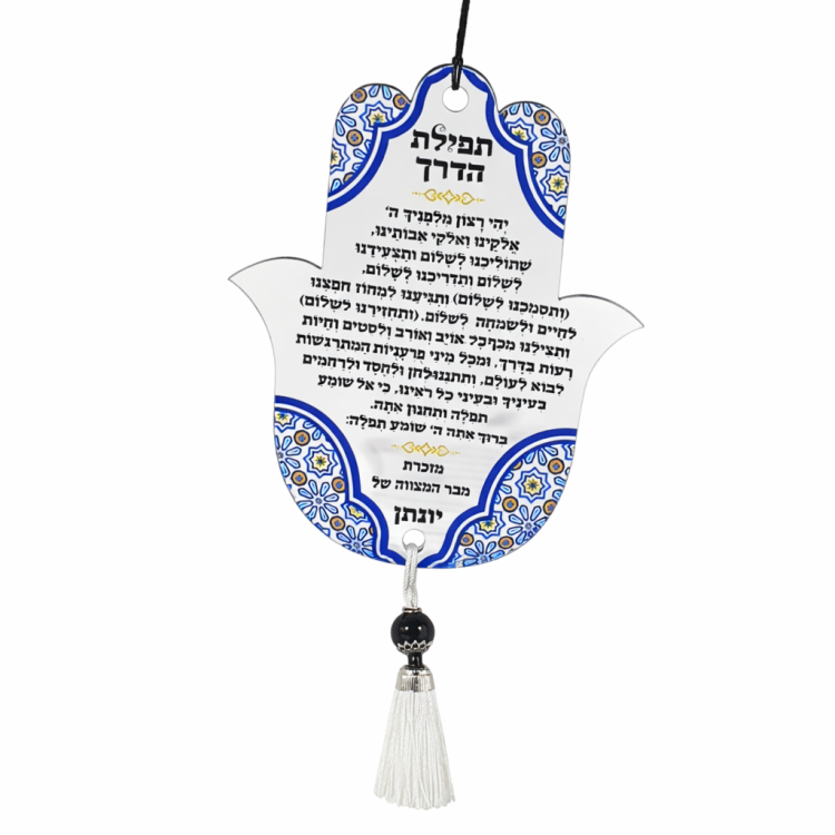 חמסה מעוצבת לתלייה עם תפילת הדרך המלאה – מתנה מושלמת לשמירה והגנה בדרכים. מגיעה עם חוט לתלייה