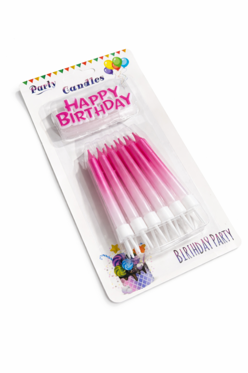 סט 10 נרות ורוד+מעמד HAPPY BIRHDAY