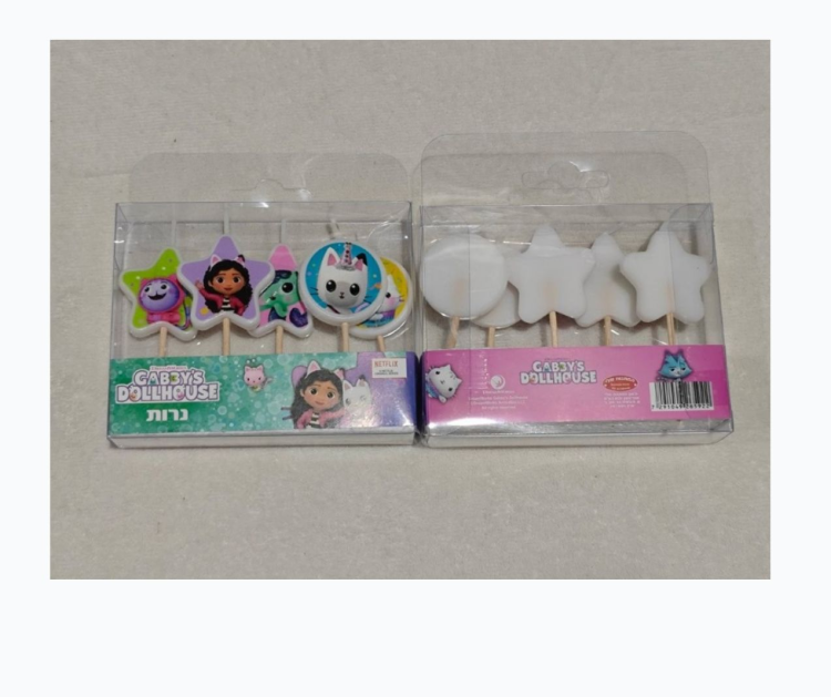 סט נרות יום הולדת צבעוניים ומדליקים בעיצוב הדמויות האהובות מסדרת Gabby’s Dollhouse של נטפליקס!