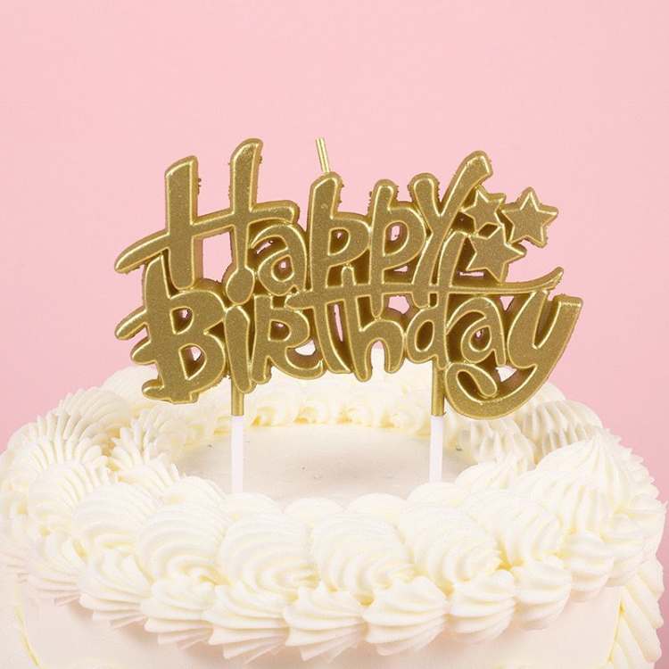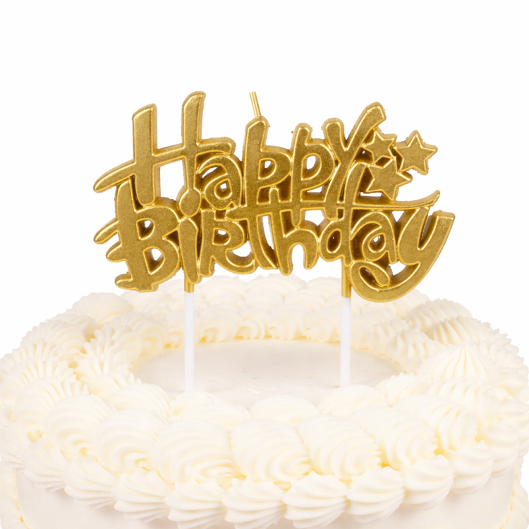 נרות כולל כיתוב "Happy Birthday" בעיצוב ייחודי עם כוכבים, בגימור מטאלי נוצץ שמוסיף ברק לכל חגיגה.