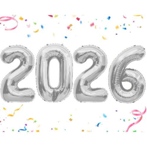 סט בלונים של המספרים 2026 בצבע כסף, לקישוט חללים גדולים.