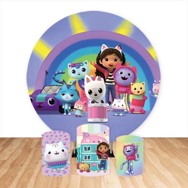 סט 3 במות+סטנד עגול ממתכת. הבדים מתלבשים על הבמות ועל הסטנד.