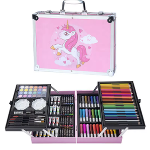 הכירו את מזוודת היצירה המושלמת שכל ילד וילדה יאהבו! מזוודת אלומיניום מעוצבת עם איור חד-קרן מתוק, הנפתחת לסט יצירה עשיר ומרשים עם כל מה שצריך כדי לצייר, לצבוע וליצור בלי סוף.