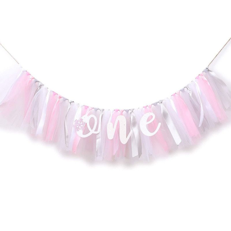 שרשרת טול חגיגית בגווני ורוד ולבן עם כיתוב "ONE", מושלמת לקישוט יום הולדת שנה ראשון. מוסיפה טאצ' אלגנטי, מתוק וחגיגי לכל מסיבה או צילומי יום הולדת.