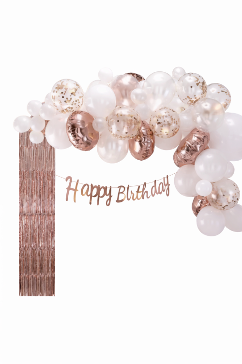 סט מפואר בצבעי ולבן  רוז גולד לקישוט חדר יום הולדת חצר לחגיגת יום הולדת מושלמת.