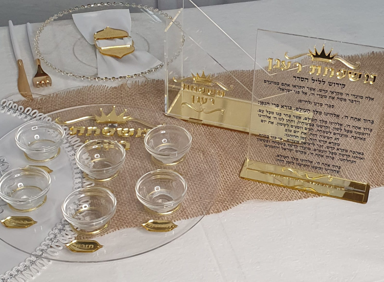 סט יוקרתי ומרשים לשולחן הסדר – בעיצוב נקי בשילוב אקריל שקוף וגימור זהב אלגנטי ✨