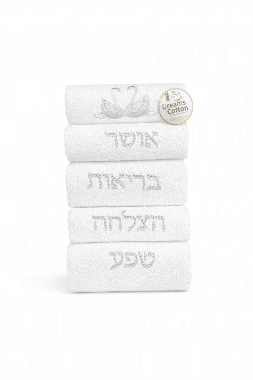 המגבות עשויות 100% כותנה איכותית לספיגה מירבית ונעימות מפנקת. מושלם כמתנה ייחודית לחג, לאירועים מיוחדים או פשוט להוספת סטייל לחדר הרחצה שלכם.