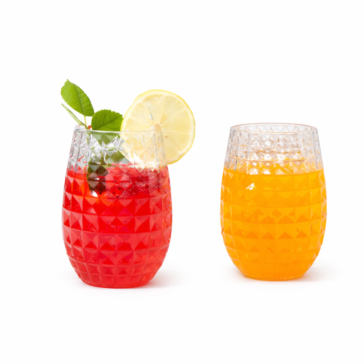 כוסות מעוצבות בנפח 500 מ"ל עם טקסטורת יהלום ייחודית, אידיאליות למיצים, קוקטיילים, מים ומשקאות קרים. עשויות פלסטיק קשיח ואיכותי לשימוש רב פעמי, מתאימות לאירוח חגיגי בבית או בגינה.