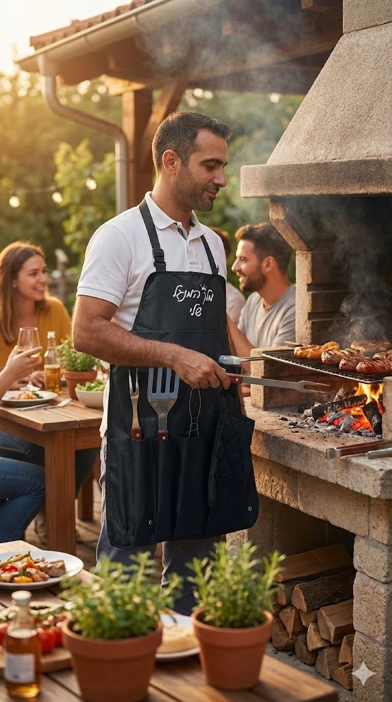 סינר מנגל עם כלים+אופציה להוספת כיתוב