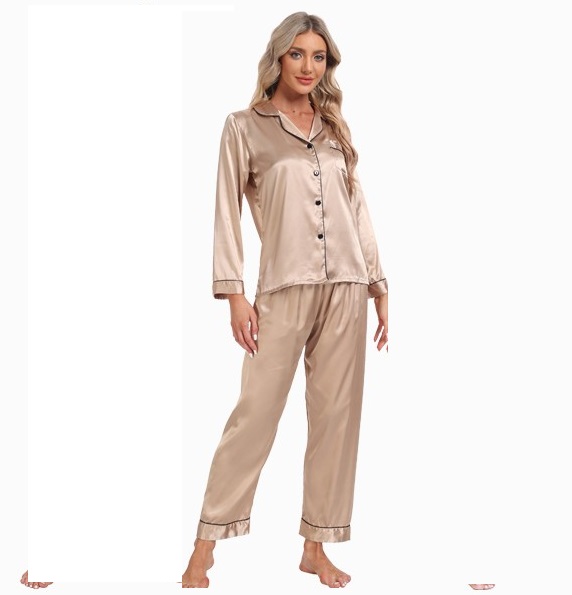 פיג'מת סאטן רוז גולד – סט ארוך